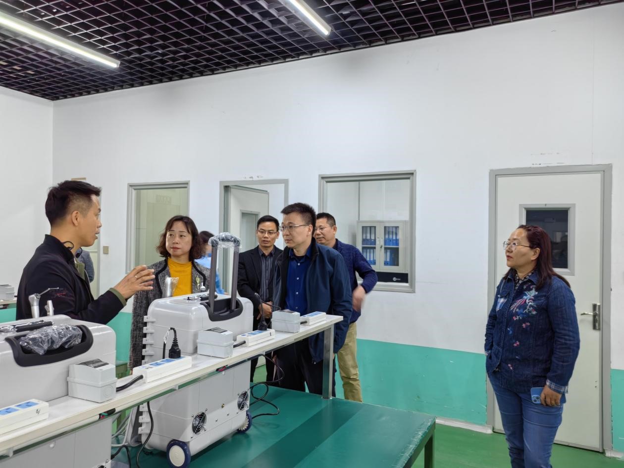 在华尔科技集团,总经理王超介绍了集团整体布局与发展规划,双方就用人需求和认知实习等方面交换了意见。通过交流,双方在下一步教学、人才联合培养、就业等方面达成重要合作意向。随后,在王超等的陪同下,赵方、张建华一行参观了集团位于新乡产业园区的生产研发基地。