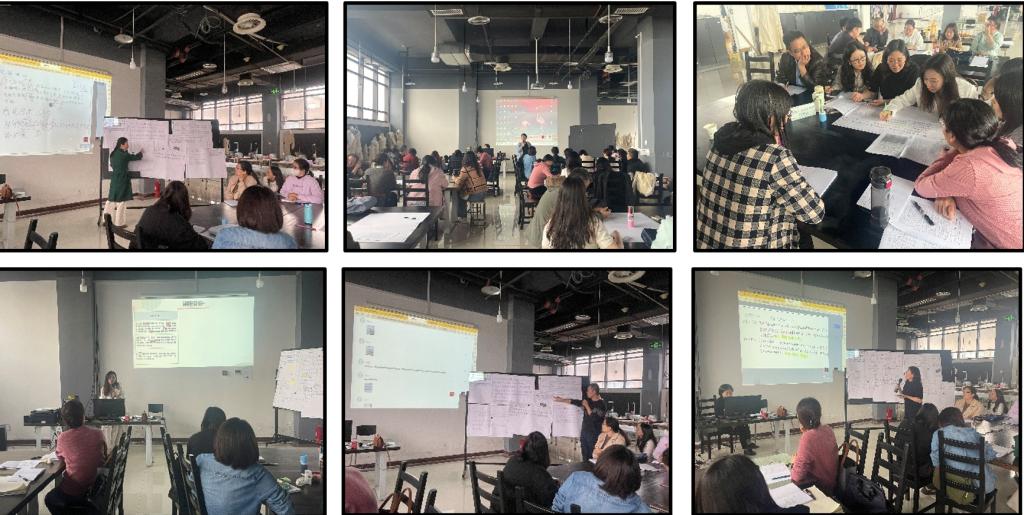 本期活动由课程中心副主任杨凌云主持,共分为三个环节进行。第一个环节是“课程目标撰写及分享”,首先组织老师们一起回顾了课程目标撰写的“ABCD”方法,接下来在实践操作环节安排老师们分小组撰写“课程目标”海报,并由各小组进行了展示说明和评价投票。课程中心为评比优秀小组和各组参与展示的老师们发放了小礼品。