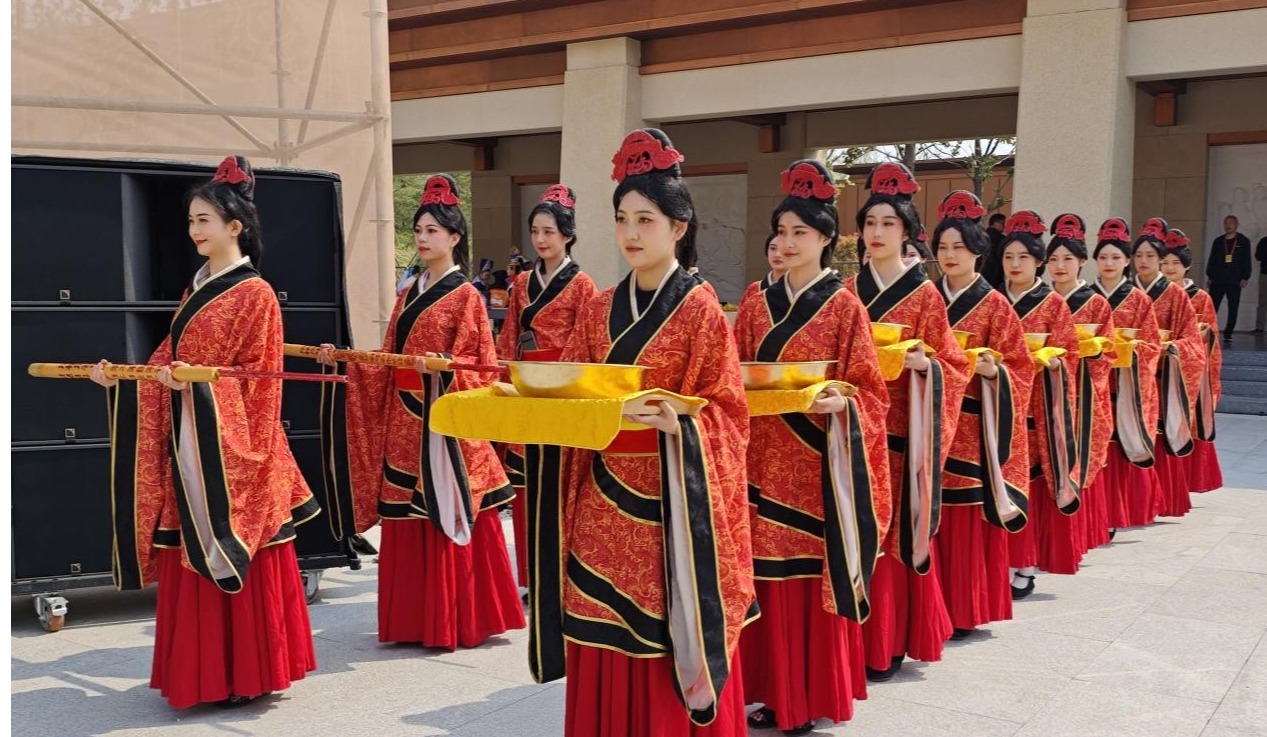 甲辰年黄帝故里拜祖大典于4月11日(农历三月初三)在河南省郑州市新郑市盛大举行,全球华人共同缅怀人文初祖黄帝,弘扬中华优秀传统文化。作为盛典重要组成部分,beat365正版唯一官网服装学院表演系同学以其专业素养与优秀表现为本次大典增光添彩,全程参与并出色完成礼仪工作。