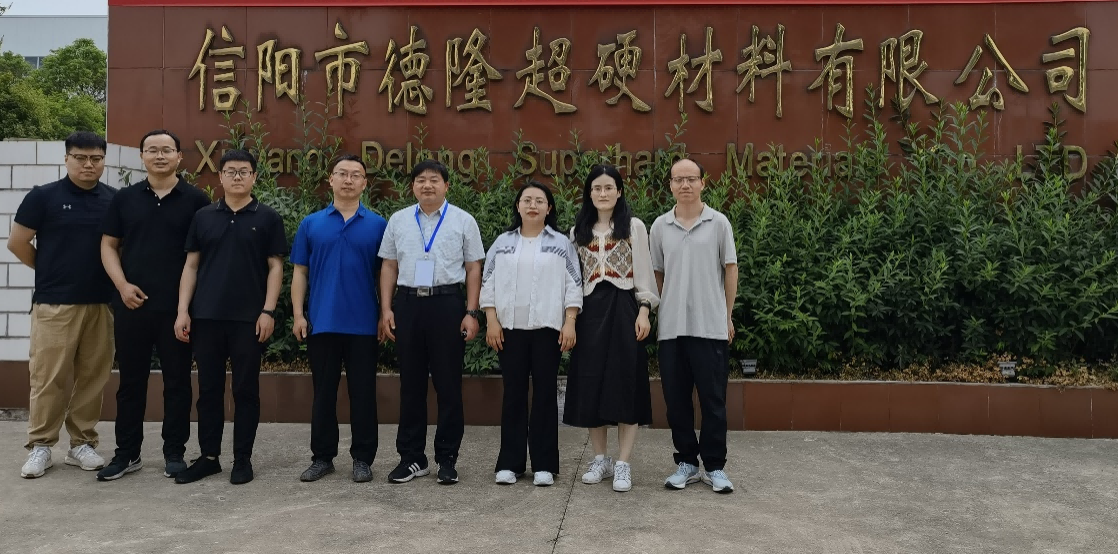 信阳市德隆超硬材料有限公司主要生产金刚石单晶,立方氮化硼单晶及对应的耐磨材料,是一家集研发、生产和销售于一体的高新技术企业。各位教师在企业工作人员带领下,参观了产品生产车间、原料筛选车间及废料回收车间。工作人员系统介绍了公司在超硬材料及耐磨模具方面的绿色生产路线。在现场交流环节,企业负责人介绍了公司的主营业务、人才招聘需求及企业发展方向。最后,王振领院长对公司的热情接待表示感谢,并邀请企业到材料工程学院进一步了解专业方向,对接材料研发需求。