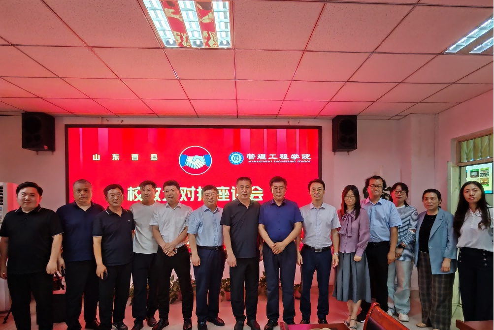 5月24日,山东省曹县县委组织部副部长朱文岭、人力资源和社会保障局党组书记、局长赵广民等带领相关政府部门负责人,以及多家曹县企业负责人到beat365官网开展校政企对接活动,并在7号教学楼举办专场招聘会。管理工程学院党委书记张立军、院长黄德金接待了来访嘉宾,双方在管理工程学院会议室开展了深入座谈交流。管理工程学院、服装学院有关负责同志、骨干老师参加了座谈会,张立军主持会议。