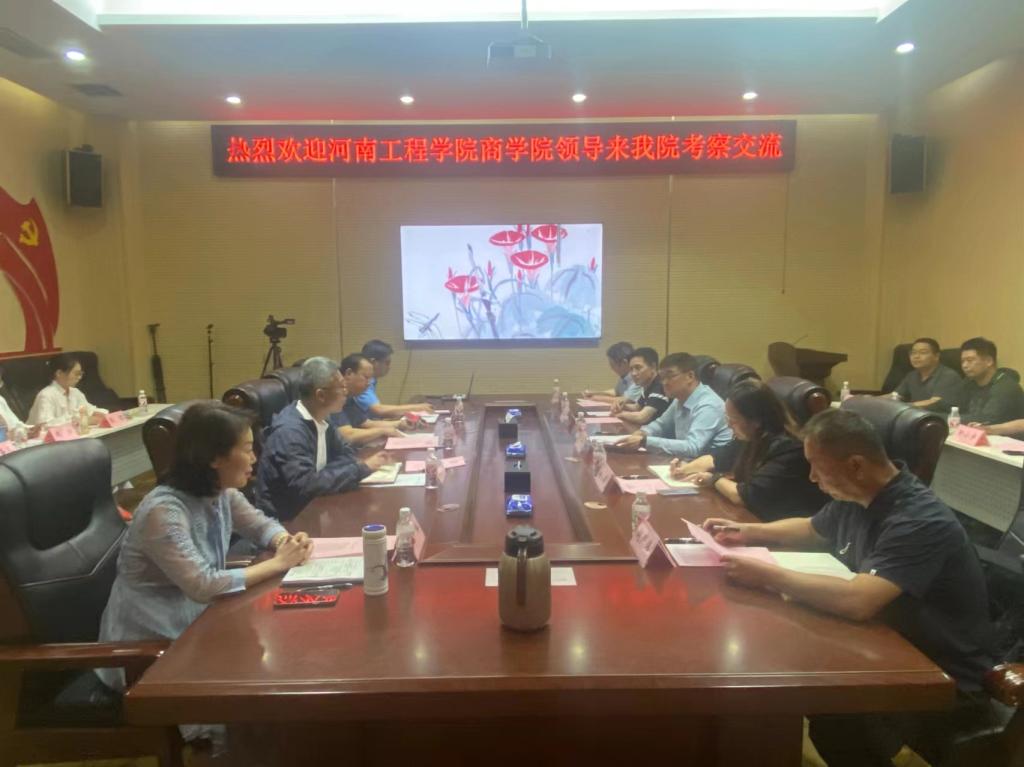5月29日下午,商学院党委书记田正军、院长高詹带领学院班子成员和部分科室负责人赴河南农业大学信息与管理科学学院(以下简称信管学院)走访交流。信管学院党委书记苏楠,院长陈振,副院长李晔、乔红波及相关部门负责人参加交流座谈。座谈会由苏楠主持。