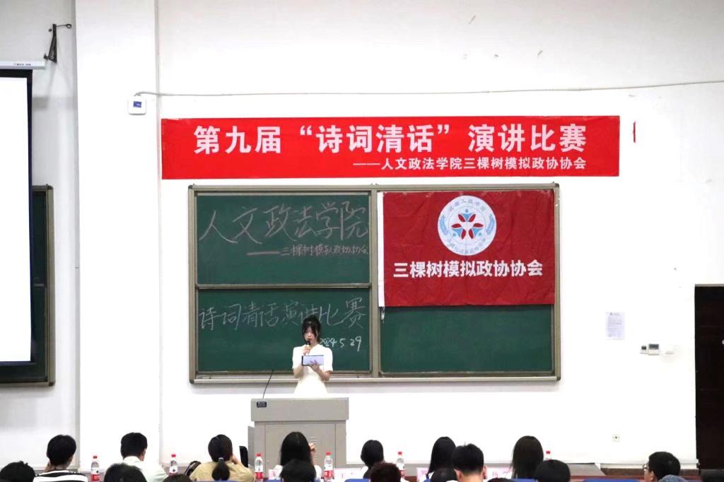 5月29日下午,人文政法学院在南校区9号楼国学大讲堂举办优秀传统文化涵养工程系列活动之第九届“诗词清话”演讲比赛决赛。