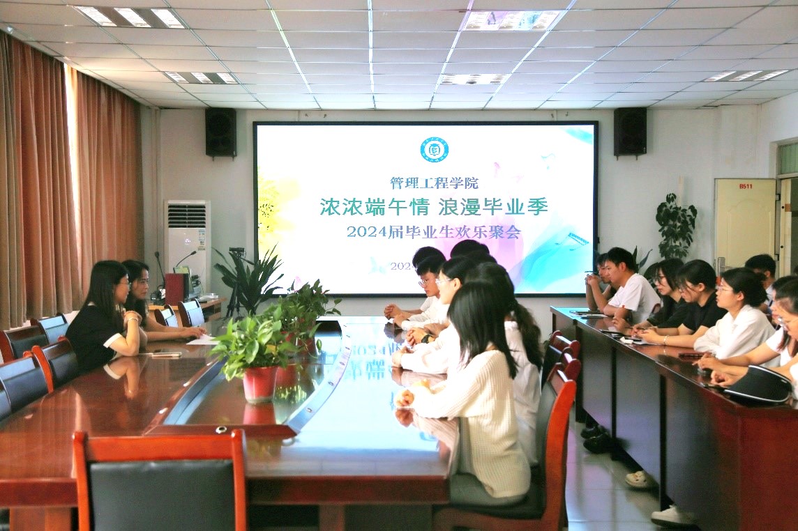 随着端午节的脚步临近,为回顾大学时光,展望美好未来,6月7日,管理工程学院在7B511举办 “浓浓端午情 浪漫毕业季”2024届毕业生欢乐聚会。院党委副书记曹冰、辅导员李飞及20余名毕业生党员参加此次聚会。座谈会由曹冰主持。
