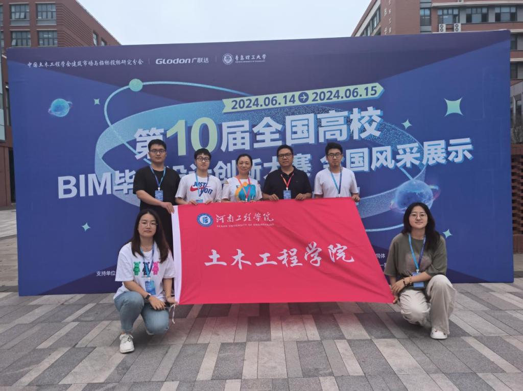 6月14—15日,第十届全国高校BIM毕业设计创新大赛风采展示活动暨颁奖典礼在青岛理工大学黄岛校区举行,beat365官网土木工程学院代表队申选召、尚琛煦两位老师带领翟恺悦、肖杉、孙卓、马旭磊、曾子涵5位参赛同学参加。