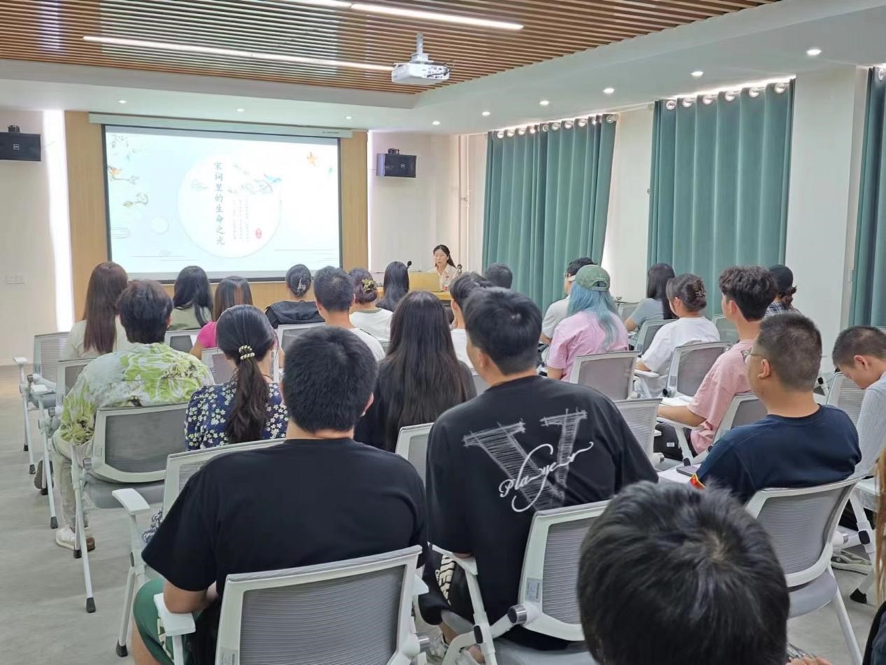 周梦梦博士以“宋词里的生命之光”为题,向同学们介绍了李清照的人生经历和爱国情怀,分析了李清照的才女之乐与才女之愁,描绘了李清照敢爱敢恨、敢饮敢醉、淑贤典雅、奔放豪迈的英雄形象,让学生们感受到这位乱世美神所具有的聪颖与傲骨、柔情与相思、坚强与悲戚。周梦梦博士运用图片、音乐、视频等形式介绍了李清照坚韧勇敢的一生,分析了古诗词中所蕴含的家国情怀,提升了学生的文化底蕴和思想修养,增强了学生对中华文化和中国精神的认同感和自豪感,对学生树立正确的世界观、人生观和价值观,争做全面发展的时代新人具有积极意义。