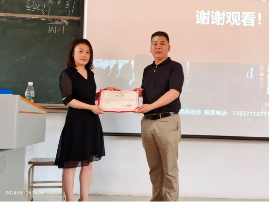 讲座最后,尚矿伟主任为乔恒燕律师颁发聘书。
