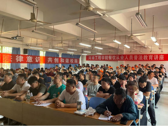 为了提高餐饮从业人员的法律意识,确保相关工作依法进行。6月26日下午, 后勤管理服务中心邀请河南陆达律师事务所执业律师乔恒燕在南校区7A101教室对餐饮从业人员进行“校园食品安全法律风险防范”讲座。