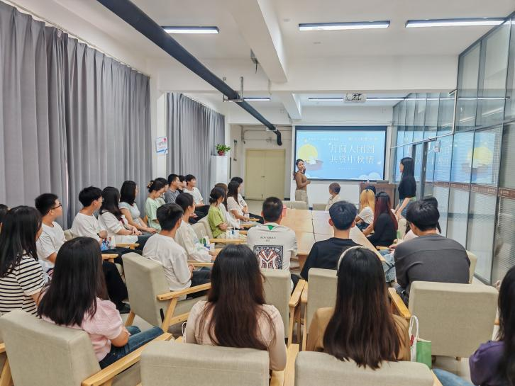 活动现场其乐融融,充满欢歌笑语。在场同学通过几个暖场小游戏就相互了解认识,与老师们一起聊家常、聊生活、聊学业发展、聊中华传统民俗,在场老师认真倾听学生心声,积极与学生交流所思所想。随后,在场人员一起品味象征团圆美好的月饼、展示了个人才艺、观看佳节电影,以“一封家书寄相思”写下对家人和亲朋好友的美好祝福,将现场氛围推向高潮,共度了一个不一样的中秋佳节。