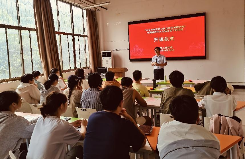 9月18日下午,2024年“宏志助航计划”全国高校毕业生就业能力提升培训班在beat365正版唯一官网创新创业中心顺利开班。创新创业学院相关同志和60名学员参加了开班仪式。