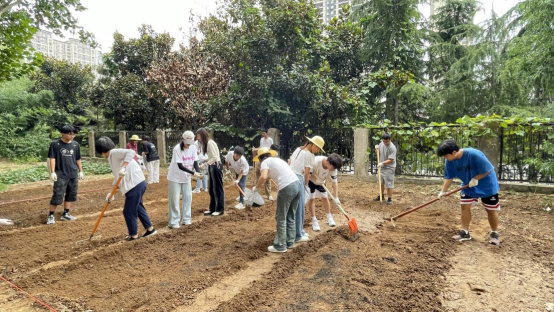 活动中,后勤管理服务中心的工作人员首先对劳动基地周边的树木进行了精心修剪,师生们携手清理了劳动基地内的杂草、枯枝和碎石等杂物。接下来,同学们手持各式农具,在育人导师与后勤老师的指导下,对耕地进行翻松和起垄,并按照西区庭院将土地划分为七块责任田,“携耕庭”“耘心田”“蔬芳斋”……师生们为各自庭院的责任田起下了富有寓意的名字,为这片土地增添了几分温馨与特别。在翻耕好的土地上,大家共同播撒下白菜、香菜、胡萝卜等种子,施肥、浇水,每一道工序都寄托着师生们对未来生活的美好愿景。