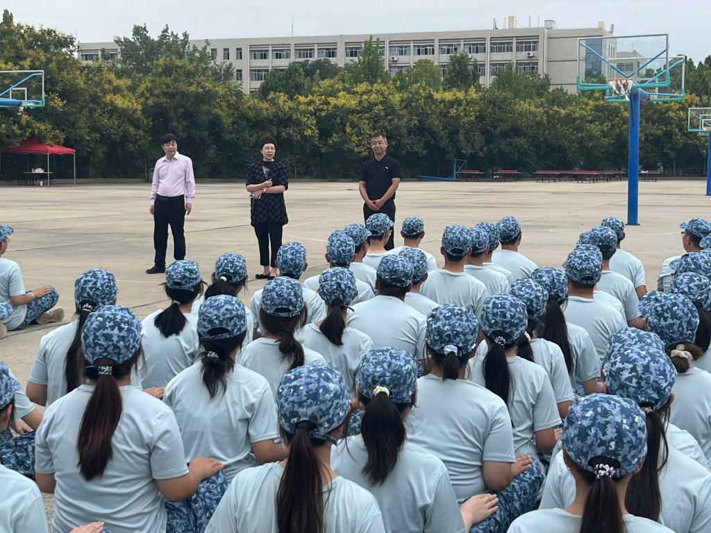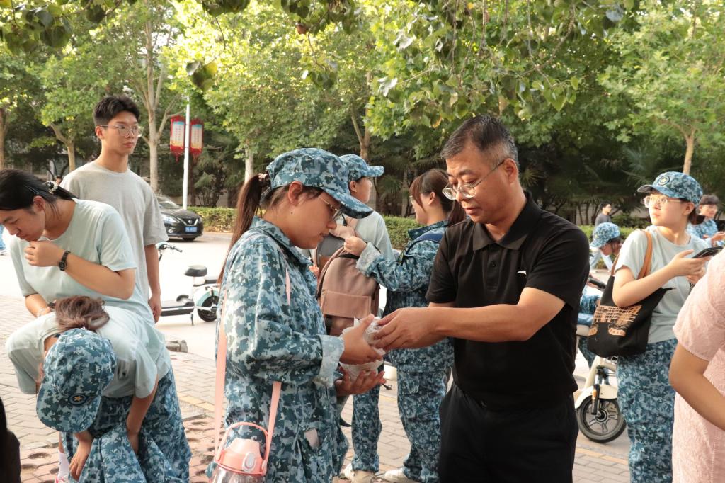 诚挚关爱,提质训练实效。新生军训期间,人文政法学院党委书记张莉、院长徐金超、党委副书记朱德富、新生辅导员吴胜男一行来到训练场,向正在军训的新生及参与军训工作的教官和带队教师致以亲切慰问,为他们送去了学院的深切关怀与温暖鼓励。张莉强调,希望同学们珍惜军训这段短暂而宝贵的时光,通过军训磨练出坚韧不拔的意志,学院将一如既往地关心和支持同学们的成长与发展,为同学们的成长成才提供全方位的服务和保障。徐金超表达了对新生们的殷切希望,他希望同学们能够继承和发扬学院的优良传统,努力学习,积极进取,为将来的学习生活打下坚实的基础。此次慰问活动,彰显了学院对军训工作的高度重视,激发了同学们的训练热情,同学们表示将带着这份美好的祝福,以更加顽强的意志投入训练,艰苦奋斗,砥砺前行,以优异的表现高质量完成军训。