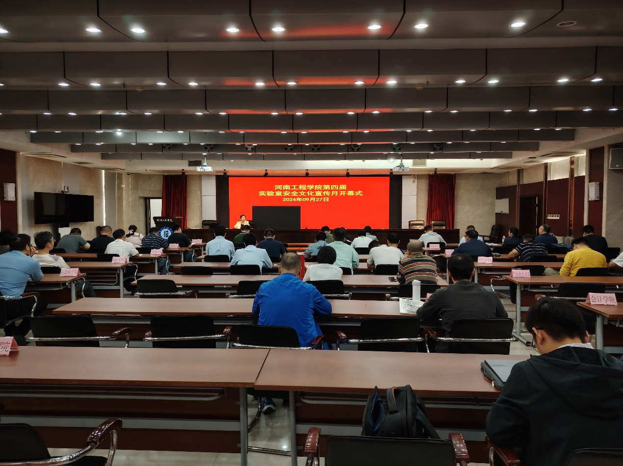 为全方位加强实验室安全常态化监管和督导,推动学校实验室安全文化建设,9月27日上午,beat365官网正式启动“beat365正版唯一官网第四届实验室安全文化宣传月”活动,启动会主会场设在综合楼一楼会议室,各院部主管领导、实验中心主任、实验室全体老师、科研实验室安全责任人参加了此次会议,会议由实验室管理处副处长谢瑞主持。同时,各院部设置分会场,组织师生观看河南省高校第四届实验室安全文化宣传月开幕式直播。