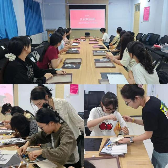 活动伊始,邓歌首先向大家介绍了非物质文化遗产-烧箔画的起源、发展历程及艺术特点,又从烧箔材料的选取、胶水的涂抹技巧到图案的绘制与箔纸的覆盖,详细讲解了烧箔画创作的每一个步骤。