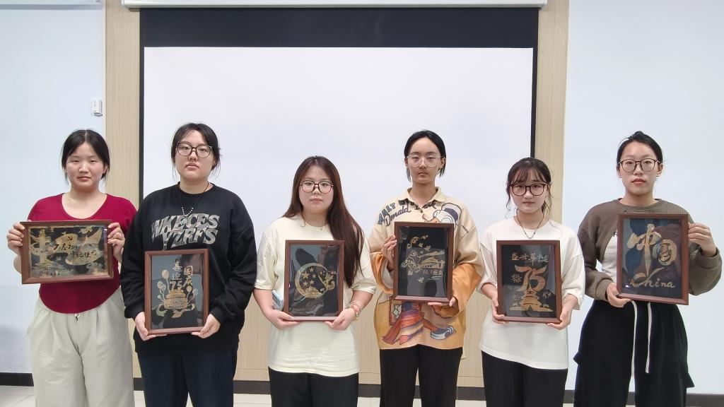 为庆祝中华人民共和国成立75周年,弘扬中华优秀传统文化,激发学生的创新思维与艺术潜能,9月29日晚上,敏行“一站式”学生社区“向美而行”工作站在慧苑4号楼多功能活动室组织开展“箔彩映华章·共绘国庆情”主题活动,社区育人导师邓歌、张婧雯担任指导教师。