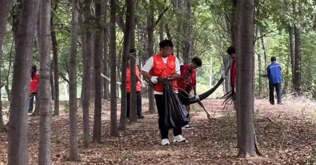 阳光倾洒下,服装学院党委书记潘景果、党委副书记杨明霞、分团委书记巴若易及党员志愿者同志们手持各种工具,蓄势待发。其中一部分党员志愿者负责收集散落的白色垃圾,还树木以清新的环境,为绿色环保贡献着自己的力量;而另一部分党员志愿者则弯腰捡起地上的枯枝落叶,让校园变得更加美观和整洁。党员师生与志愿者们一起忙碌的身影,如同一幅幅动人的画卷,在校园的每个角落绽放着温暖与希望。每一次弯腰捡起一根树枝,都仿佛捡起了一份对环境的呵护。在活动中,大家相互配合,默契十足,志愿者们的欢声笑语回荡在校园中,与秋风交织。