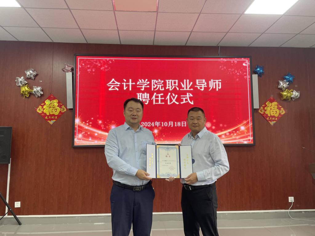10月18日下午,会计学院在八号楼举行职业导师聘任仪式。学院党委书记、院长程光、副院长刘根霞、副书记张维和部分教师代表出席聘任仪式。