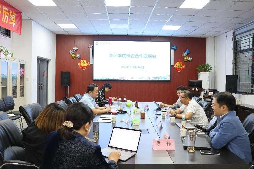 在讲座后举行的财务数字化转型座谈会上,双方就数字化财会教育进行了交流。数智教育发展(山东)有限公司总经理宋国荣分享了基于数据科学的实验教学新范式改革;上海思凯普科技总经理李晟介绍了企业财务共享的流程标准化实施过程,令才科技总经理王泽介绍了企业智能审核技术的应用场景。随后,双方就人才培养、实践教学和课堂改革等议题深入交流。大家一致认为,AI时代学生需注重实践认知,提升沟通、写作和逻辑思维能力。教师应当围绕数据治理、财务创造价值,从教学思维、内容、方式和方法等不同角度出发,提升会计专业教学水平。