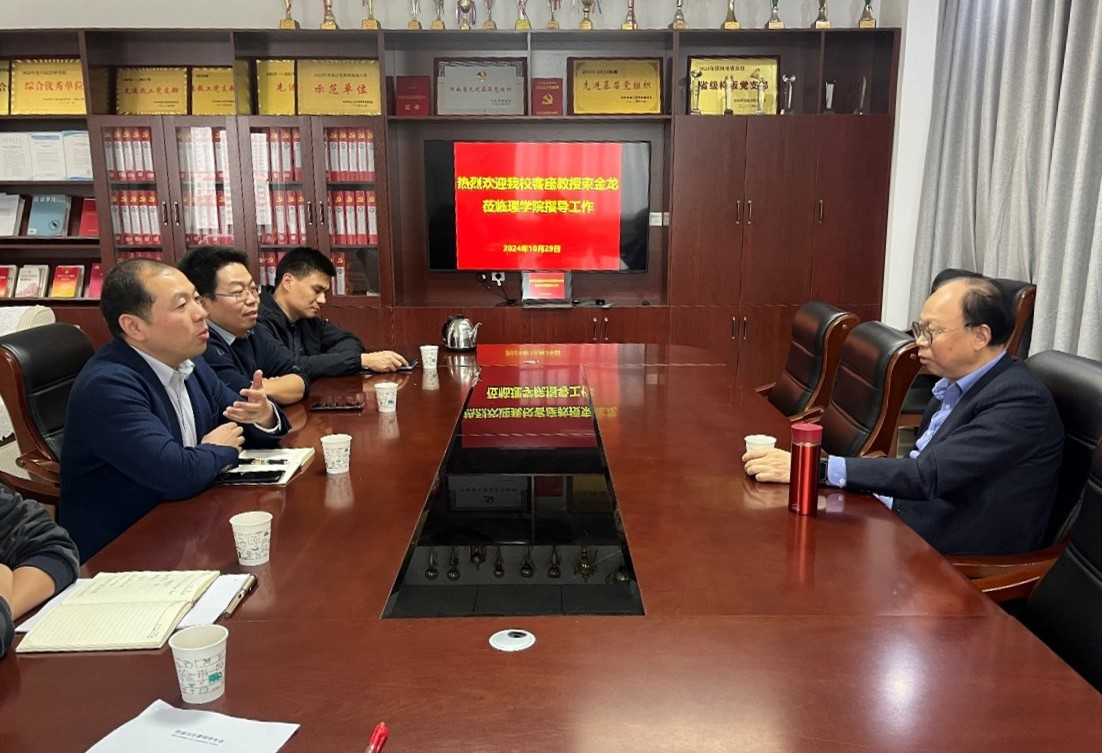 10月29日下午,beat365官网客座教授、上海市原学位办主任、上海市教育委员会原高教处处长、上海师范大学博士生导师束金龙教授莅临理学院调研指导工作。理学院党委书记刘付军主持调研座谈会,理学院党政班子及部分教师代表参加。调研会前,副校长王永恒接见了束金龙教授,对束教授专程来学校调研指导工作表示欢迎和感谢。