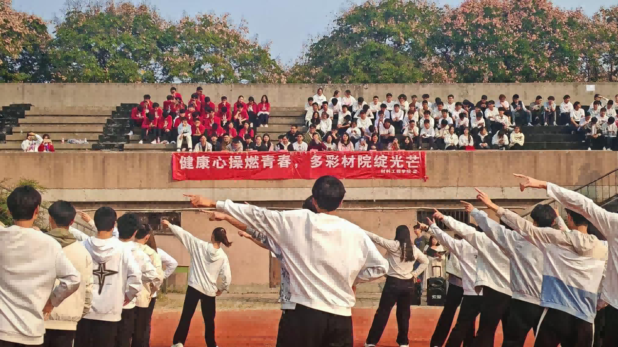 为减轻学生在学业和生活中所面临的压力,培养学生建立积极向上的心态,材料工程学院于11月10日下午在桐柏路校区操场举行“健康心操燃青春,多彩材院绽光芒”心理健康操活动,2024级全体学生参加,学院党委副书记金玲、团委书记曹伟娜和各年级辅导员班主任出席本次活动。