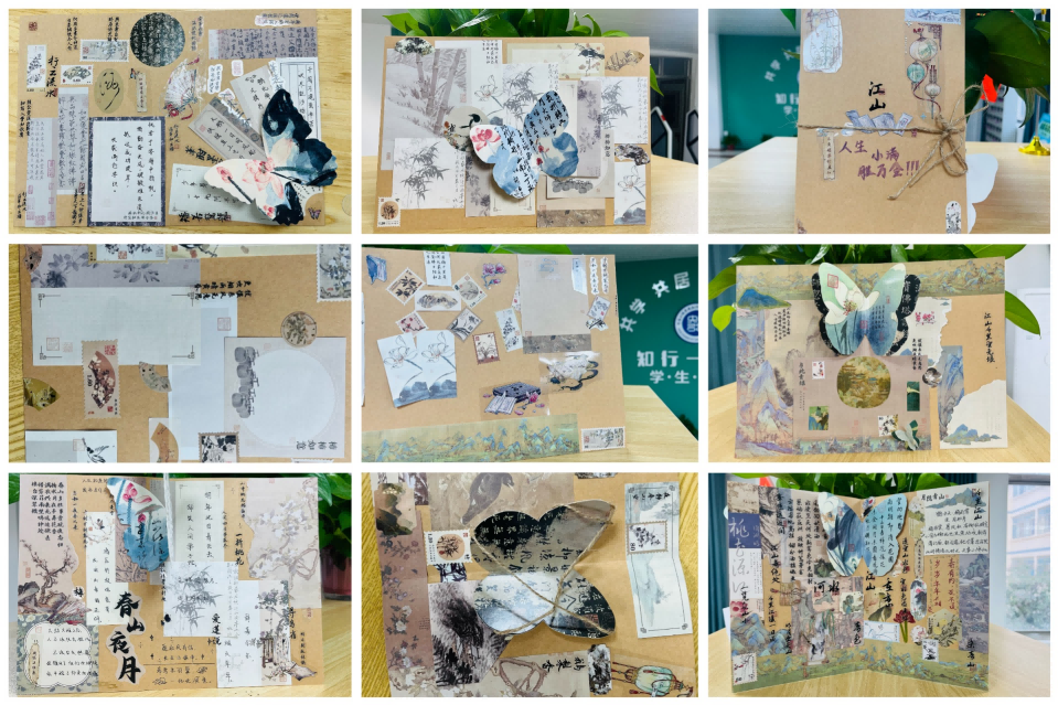 手账,不仅是一种记录生活的方式,更是一种表达审美与个性的艺术。活动开始前,社区育人导师田霞向大家介绍了手账的起源、发展以及手账在日常生活中对于人们的意义。接下来,学生们根据自己的兴趣和审美,运用手中的画笔和工具,将具有古风元素的贴纸、字画等素材充分融入到手账制作当中,在一笔一画间感受中华优秀传统文化的深厚底蕴。
