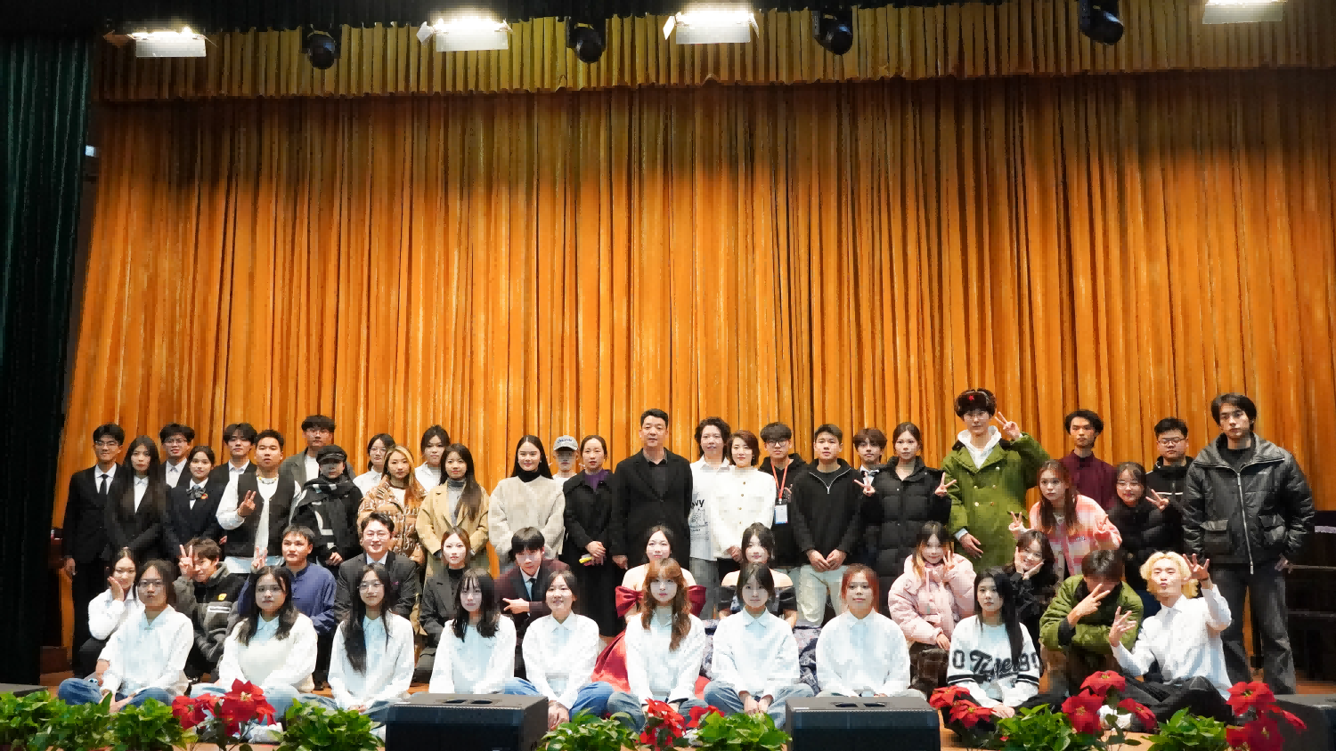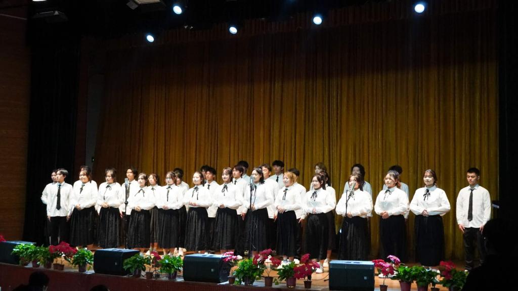 活动当晚,剧场内精彩纷呈,各类优秀剧目作品依次登台亮相,涵盖了精品戏剧小品、优秀戏曲剧目、原创红色朗诵、主旋律歌曲、舞蹈等优秀剧目作品。其中,民乐合奏《赤伶》、合唱《我和我的祖国》等节目深情激昂,赢得了现场观众的阵阵掌声。故事讲述《传承红色基因,弘扬靖宇精神》更是将观众带回到那个烽火连天的年代,让大家深切感受到杨靖宇将军的英勇事迹和爱国主义精神。此外,京剧甘露寺选段《劝千岁》、小品《如此竞争》、流行舞《MEOW》等节目也各具特色,为观众带来了一场视听盛宴。诗歌朗诵《你是这样的中国人》、中阮独奏《蒙古舞曲》、快板表演《同仁堂》等节目更是将现场氛围推向高潮。 终曲《相亲相爱》在同学们的深情演唱中圆满结束了本场演出,传达出全校师生团结一心、共创美好未来的坚定信念。