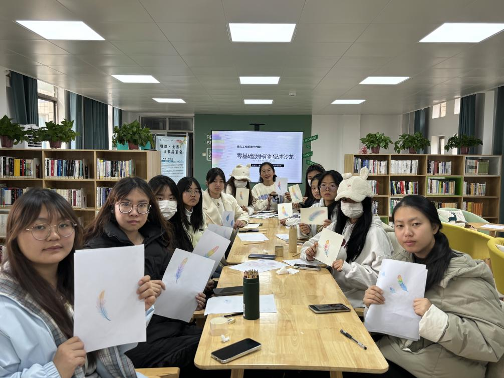 创意启航,色彩斑斓。育人工作坊第十六期——零基础彩铅绘画艺术沙龙,邀请了公共艺术教育中心的徐晶晶博士主讲,在徐晶晶博士的悉心示范与指导下,悄然绽放了一场“绘梦周末 笔尖生彩”的艺术盛宴。从线条勾勒到色彩填充,从光影捕捉到细节描绘,每一笔都引领着学生们穿梭于想象与现实之间,激发着创意的灵感与情感的共鸣。数小时的沉浸创作,学生们不仅领略到了彩铅绘画的无穷魅力,更在实践中培养了耐心与观察力。他们徜徉于色彩的天地里,体验着笔尖的魔力与艺术的喜悦,最终,一幅幅生动绚丽的七彩羽毛彩铅画作品跃然纸上。