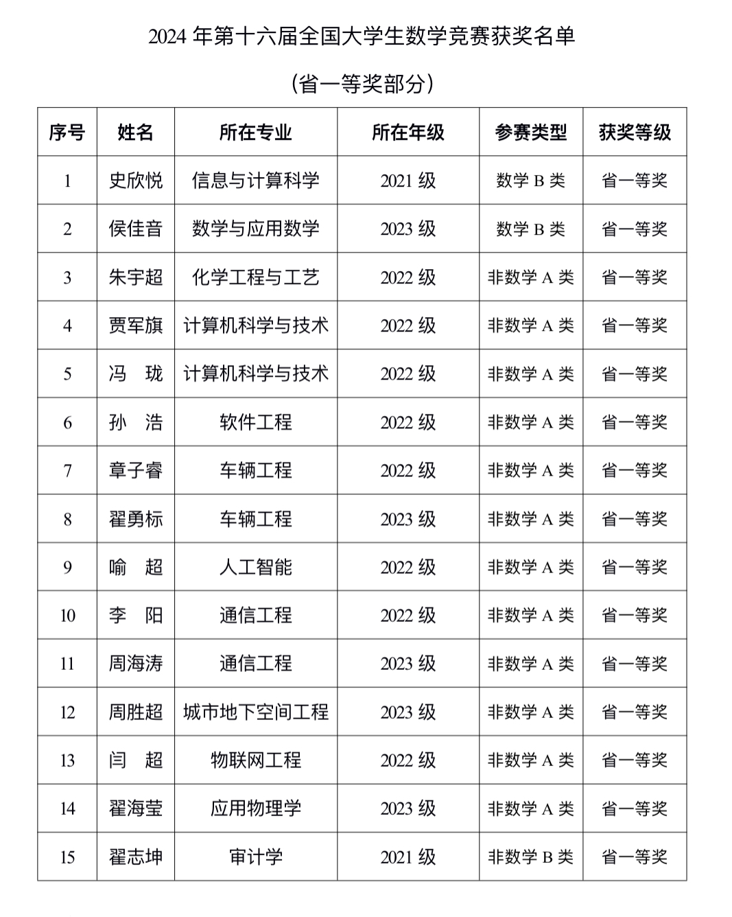 近日,由中国数学会主办的2024年第十六届全国大学生数学竞赛河南赛区获奖名单揭晓,beat365官网来自理学院、化工与印染学院、机械工程学院、计算机学院、电气信息工程学院、土木工程学院等17个学院的234名同学参赛,共计获得河南省一等奖15项,省二等奖33项,省三等奖34项。