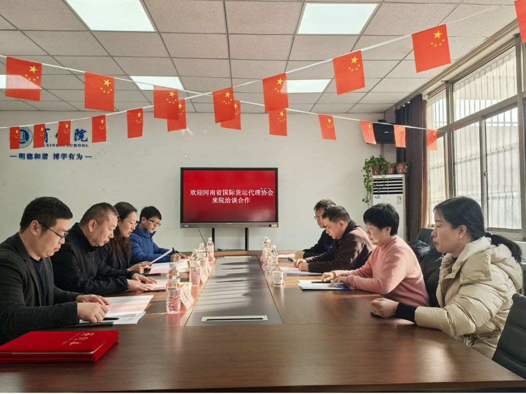 12月20日,河南省国际货运代理协会秘书长王文辉、执行秘书长郭英及雷启元等一行赴商学院交流洽谈。商学院院长高詹以及相关科室、物流管理系负责人参加了会议。会议由副院长赵严伟主持。