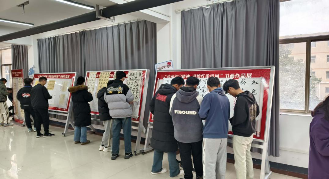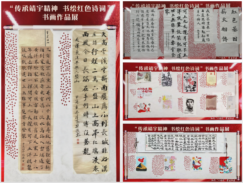 杨靖宇精神,展书画芳华。“传承靖宇精神 画绘红色诗词”线下书画作品展,参赛选手们在酝酿和沉淀后提交的书画作品,由社区育人导师和学生评委进行了统一评选,并通过“beat365正版唯一官网知行‘一站式’学生社区公众号”平台将所有获奖作品进行了统一布展。此次活动共展览了50多位同学的近80幅作品,涉及绘画、书法、摄影等纸质形式张贴,通过线上宣传召集近400位同学参与,并线下领取“小红花”贴纸进行投票。书画展览现场热闹非凡,反响热烈,投票学生感受到了极大的视觉震撼和精神鼓励。学生们在创作作品、欣赏作品的同时,更加深度理解了“靖宇精神”的基本内涵,学生们纷纷表示,会在接下来的实践中不断传承和弘扬靖宇精神。