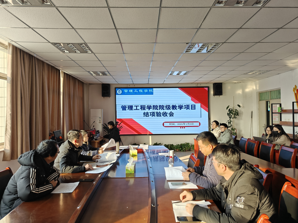 1月3日,管理工程学院在7B511举行院级教学研究项目、教学质量工程项目结项验收会,对2024年立项的有关项目进行集中结项验收。院长黄德金、副院长高顺成、高博作为评审验收评委出席验收会并听取结项汇报。结项验收会由高博主持。
