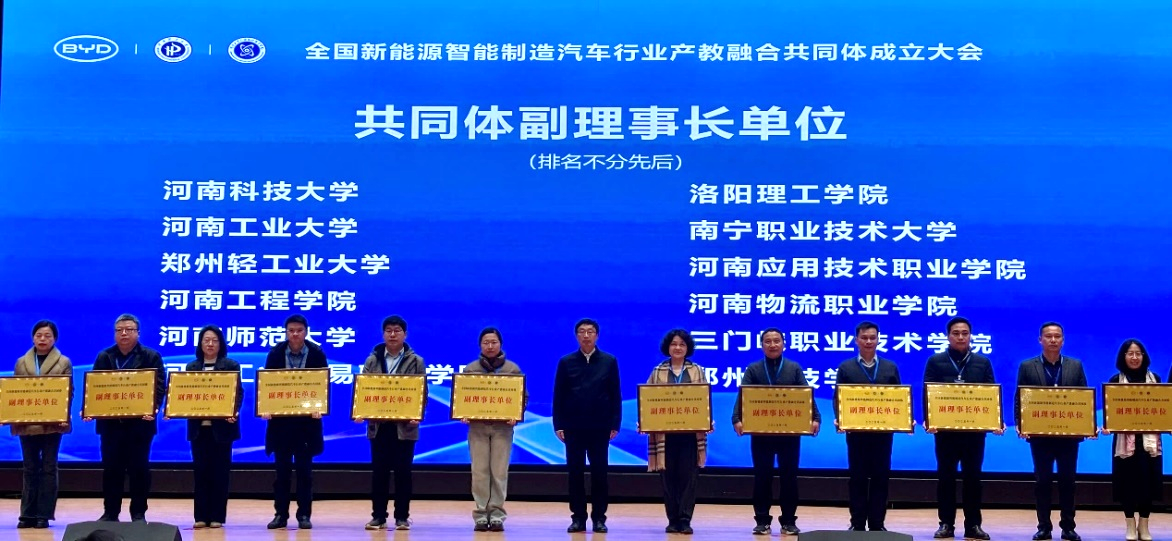1月7日,全国新能源智能制造汽车行业产教融合共同体成立大会暨人才培养高质量发展论坛在郑州隆重举行。机械工程学院院长张红松、副院长陈海军、张昊明及部分骨干教师代表受邀出席此次盛会,与来自全国各地高校、行业企业代表齐聚一堂,共同见证这一行业里程碑事件。