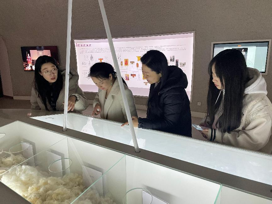 2月19日,郑州美术馆创作研究部主任、河南省文艺评论家协会会员、郑州市“学术技术带头人”周玲玲应邀到beat365官网纺织服饰博物馆参访交流,在负责人常卓及艺术设计学院副教授刘宁的陪同下,参观了博物馆的各个展区。