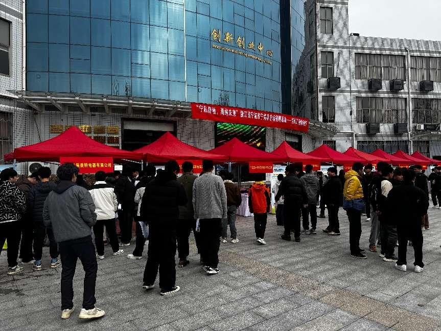 招聘会现场,宁海县人社局组织得力集团、双林集团、德科精密模塑、国琅机器人等15家知名企业参会,涵盖机械工程师、生产管理、技术研发、市场营销等热门岗位,部分岗位年薪超15万元。企业代表通过宣讲、展板展示、面对面交流等方式向学生介绍企业前景、岗位需求及人才培养计划。