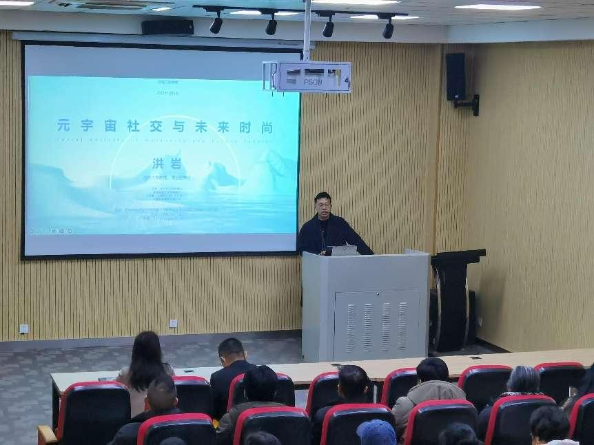 洪岩教授拥有丰富的学术背景和科研经验,在时尚人工智能及可持续时尚领域有着卓越贡献。本次讲座,洪教授结合自身研究成果,深入浅出地讲解了元宇宙概念及其对时尚产业的影响,以及如何利用这些前沿科技推动传统时尚行业向数字化转型,并通过生动的案例分析,介绍了虚拟聚会与派对、沉浸式社交游戏、虚拟工作与学习空间等元宇宙新社交形态。