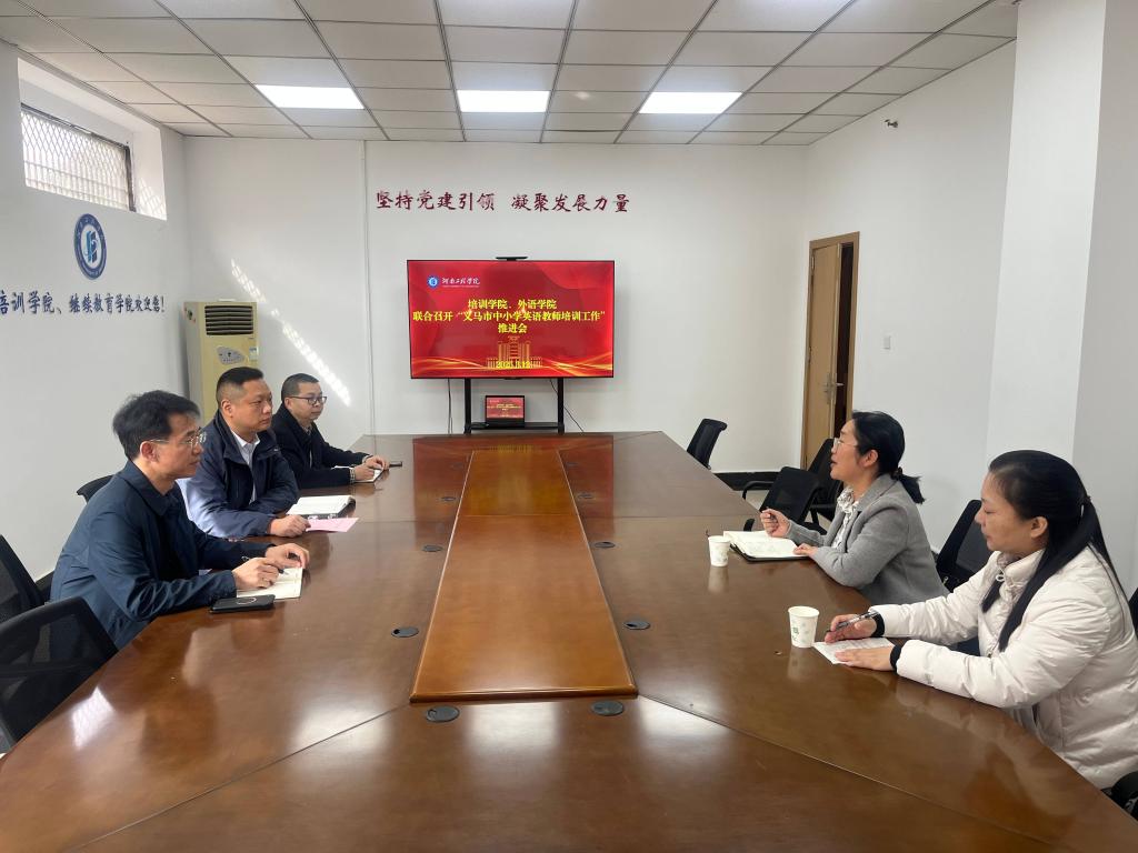为加快校地合作项目落地,3月12日上午,培训学院、外语学院就“义马市中小学英语教师培训项目”落地工作进行安排部署,培训学院院长周枫钧、外语学院院长高稳及项目相关人员参加了会议。