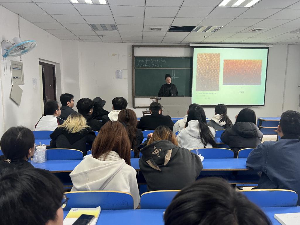 系列讲座第一讲“经纬列张:传统服装面料考释”,由常卓老师主讲。常卓从面料的基础组织结构讲起,详细阐述了传统服装面料的分类、特性及织造工艺,重点介绍了绫、罗、绸、缎、锦、缂丝等代表性丝绸品种。在讲座的互动环节,常卓展示了传统织机的构造和多种传统服饰面料样品,并邀请观众触摸感受面料的质地和纹理,使师生们对传统服装面料有了更加直观和深入的了解,对中华优秀传统文化的传承与发展有了更深刻的认识。