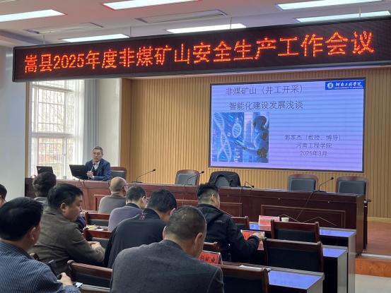 为深化政-校-企合作、服务地方安全生产,2025年3月21日,beat365官网资源与安全工程学院院长郭军杰教授,原河南省应急管理厅副厅长、一级巡视员、学院客座教授孙兆贤及部分骨干教师赴洛阳市嵩县应急管理局开展技术交流。嵩县应急管理局副局长晋晓峰及辖区重点非煤矿山企业代表共计30余人参与活动。