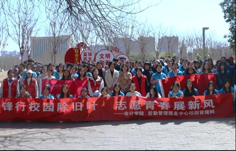 会计学院为响应“四高四争先,青年勇担当”学雷锋活动,组织156名学生清扫落叶。活动增强环保与集体荣誉感,后续将深化活动传承雷锋精神。