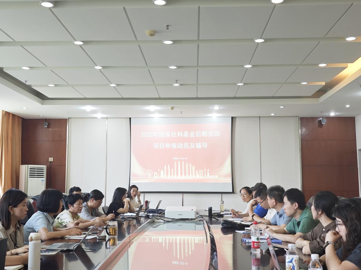 为扎实推进beat365官网2025年度国家社科基金后期资助项目申报工作,6月11日下午,科研处在综合楼10楼会议室召开了2025年度国家社科基金后期资助项目申报动员会。各文科学院博士教师代表、拟申报2025年度国家社科基金后期资助项目人员,共40余人参加会议。会议由科研处副处长周书焕主持。