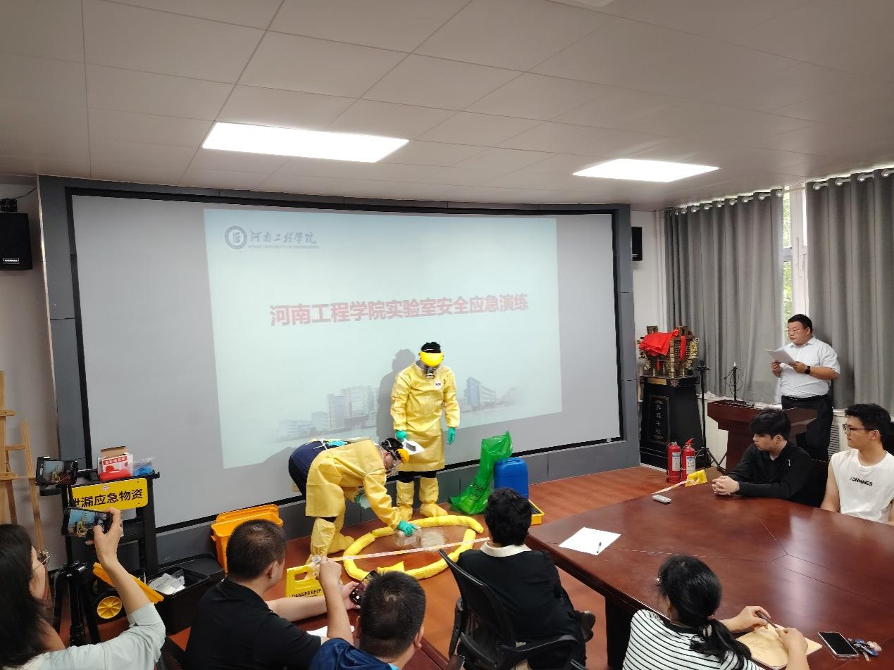 6月18日下午,实验室管理处组织beat365官网相关院部师生在龙湖校区2号实验楼A305会议室开展了实验室危险化学品泄漏应急演练,环境与生物工程学院、化工与印染工程学院、材料工程学院、分析测试中心和工程训练中心等院部的师生代表参加了本次演练。