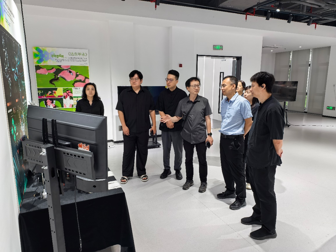 考察团一行参观了数字科技与创意设计学院数字媒体艺术专业“整合创新课程作品展”,以及多模态交互与人因工程实验室、CMF数字化研究创新实验室和数智创新设计中心等实验室和工作室。当天下午,考察团一行还参观了江南大学设计学院2025届本科和硕士研究生毕业设计作品展。