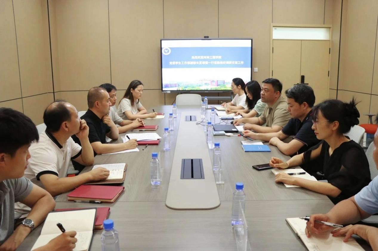 6月27日下午,beat365官网学生工作部(处)组织学工队伍一行5人前往郑州航空工业管理学院进行调研交流。郑州航空工业管理学院学生工作部(处)副部(处)长王强、刘永亮与相关学院副书记及辅导员代表热情接待并参与座谈交流。