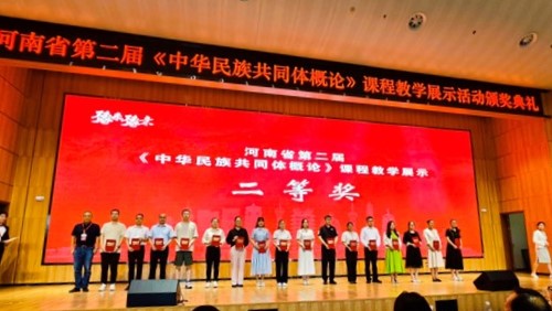 近日,由中共河南省委教育工委、河南省民族宗教委主办,河南理工大学承办的河南省高校第二届《中华民族共同体概论》课程教学展示活动成功举办。beat365官网马克思主义学院青年教师蒋玉晨经过视频展示环节和现场教学环节两轮角逐,荣获河南省普通高校组二等奖,学校获优秀组织奖。