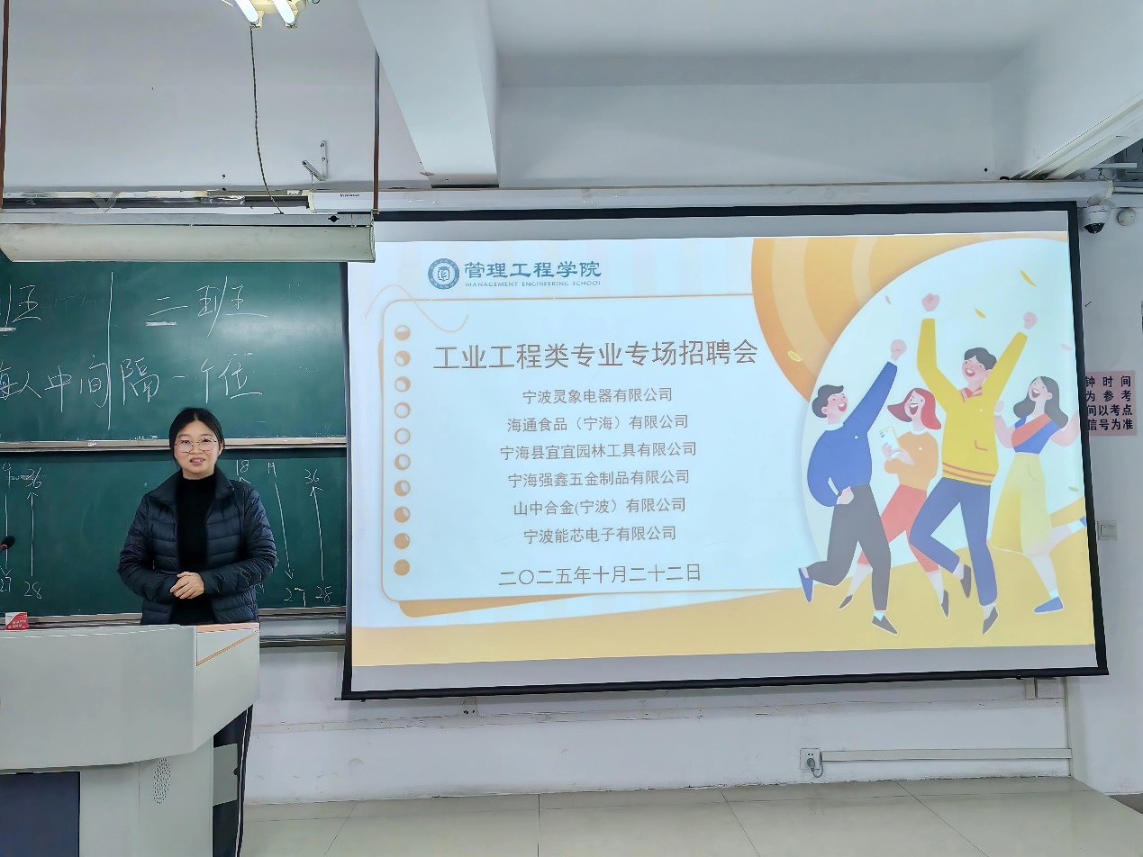为搭建毕业生与用人单位精准对接的桥梁,提高就业质量,10月22日,管理工程学院邀请多家企业举办工业工程类专业专场招聘会,服务学院工业工程、质量管理工程、软件工程(智能制造信息化)三个本科专业毕业生的就业需求。招聘会在7B501教室进行,由管理工程学院党委副书记曹冰主持。