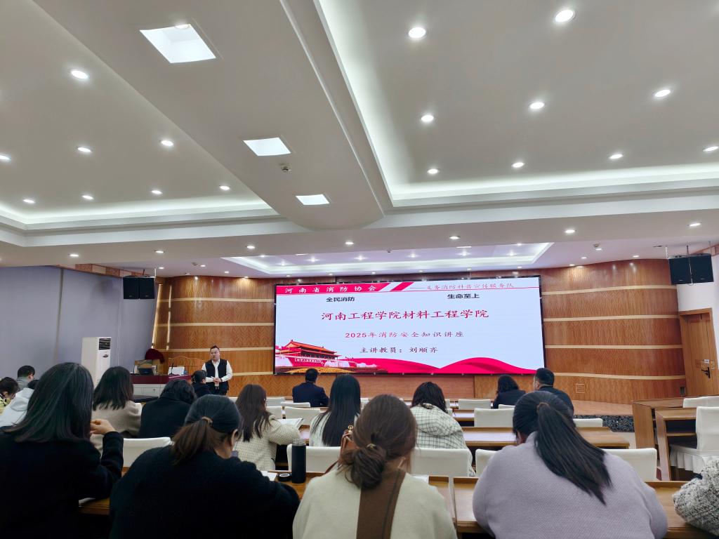 为进一步增强学院全体师生的消防安全意识,提升应对突发火灾的自防自救能力,11月5日,材料工程学院邀请河南省消防协会刘顺齐教员,在桐柏路办公楼一楼学术报告厅开展了一场生动且富有实效的消防安全专题培训。