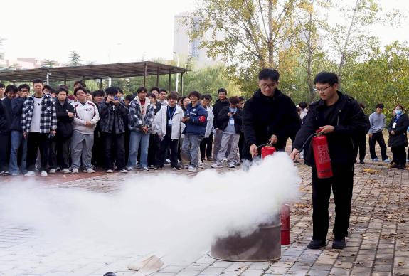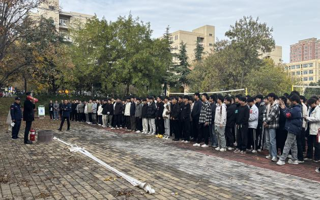 演练中,消防广播警报响起后,应急响应迅速启动。学生们按照 “间隔10秒、由低至高”的指令,以湿毛巾掩口鼻、弯腰扶墙的规范动作,沿安全通道有序撤离。志愿者动态监测人流密度、调控疏散节奏,有效防范拥挤踩踏风险,楼栋北侧同步完成签到核验与全员清点,师生协同处置效率显著提升。演练结束后,特邀消防协会张教员主讲,为在场师生系统传授火灾预防、火场逃生要领及灭火器材使用等核心知识。在专业指导下,学生代表动手实操了干粉灭火器的使用方法,熟练掌握灭火流程与技能。