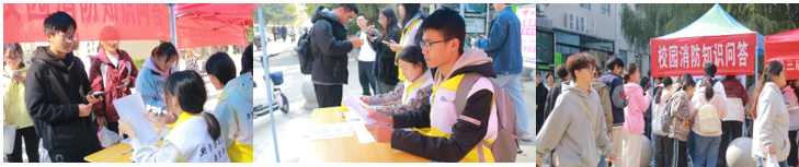 11月5日—11月9日,大学生消防协会“学消防知识,筑安全校园——争做消防安全明白人”校园消防知识问答活动在南区龙源餐厅十字路口、西区篮球场与A05处路口、桐柏路和南阳路校区线上举办。本次活动通过“以赛促学,以学促用”的方式,让消防安全知识深入人心,有效提升了全员的火灾防范意识和应急处置能力。