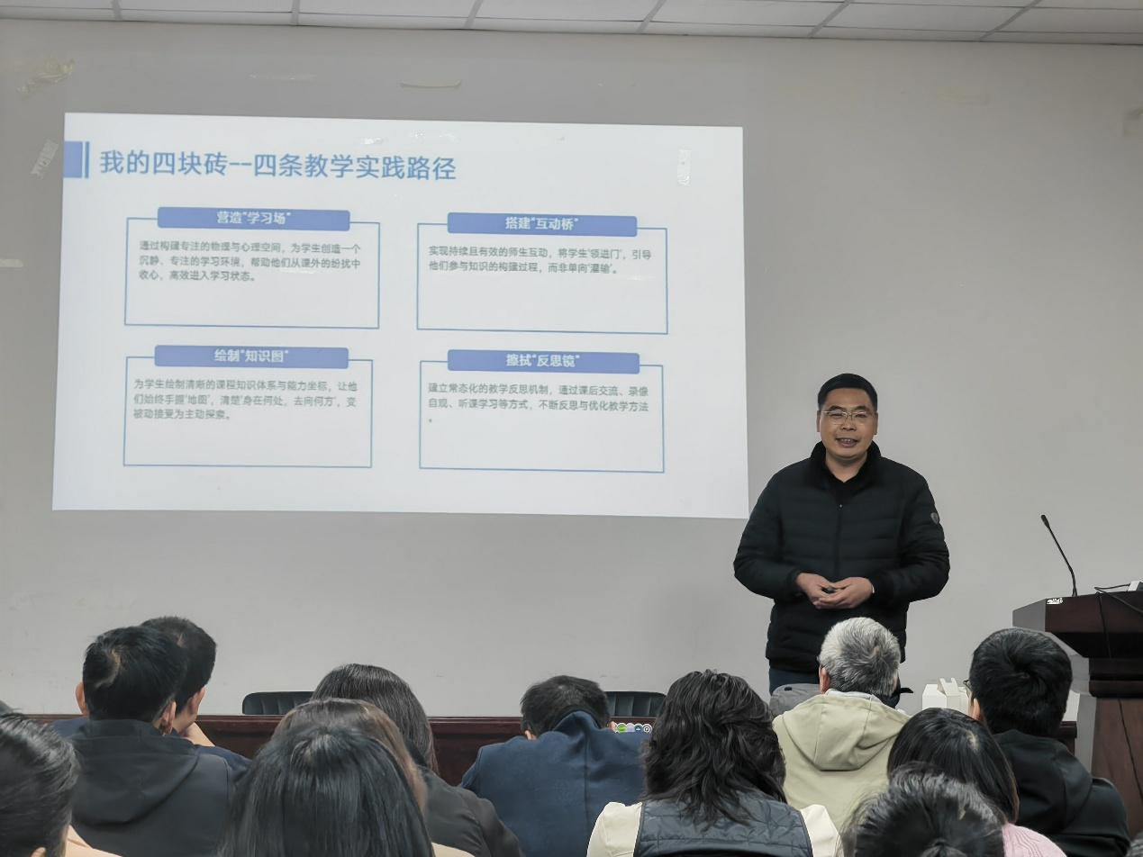 分享会上,雷万忠老师结合多年的教学实践,从“五个方面”进行了深入讲解与经验分享。一是要营造一个良好的学习环境,让学生在积极、开放的课堂氛围中主动学习;二是要给学生一张地图,通过清晰的教学目标与学习路线,帮助学生掌握知识脉络;三是要搭建一座师生交流的桥梁,增强教学互动与情感联结;四是要给自己一个进行教学反思的途径,不断改进教学方法与内容;五是要多听老教师上课,通过学习借鉴不断提升自身教学水平。
