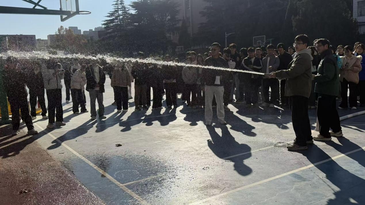 为深入贯彻校园消防安全工作方针,筑牢校园火灾防控思想防线,全面强化学生消防安全责任意识,提升火灾应急处置能力,材料工程学院于近日在操场开展消防安全演练活动。